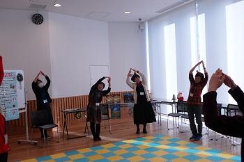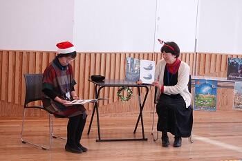 今回は英語やドイツ語の絵本3冊の読み聞かせと、歌に合わせた簡単なダンスを行いました。クリスマスにちなんだ絵本『It's Christmas, David!』や歌「We Wish You A Merry Christmas」もあり、一足早いクリスマスを楽しみました。