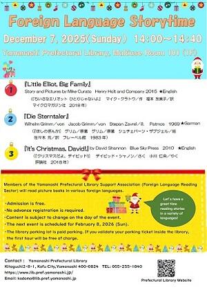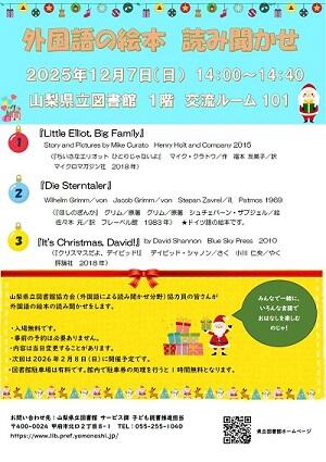 令和7年12月7日(日曜日)「外国語の絵本読み聞かせ」を開催します♪【事前申し込み不要】